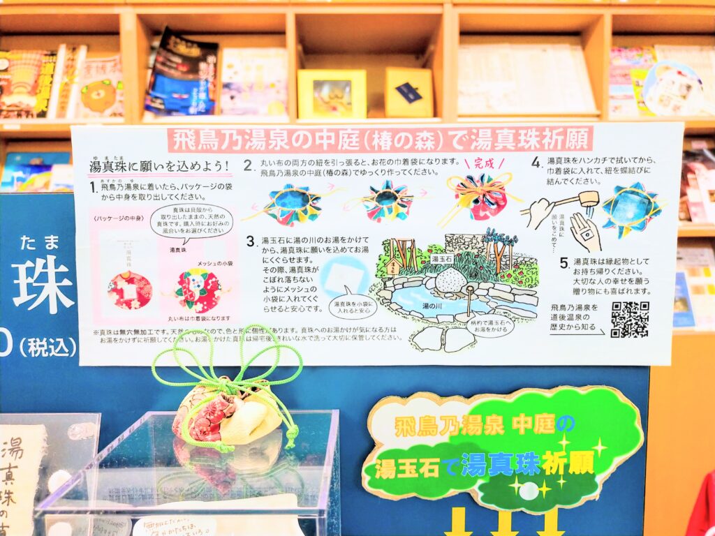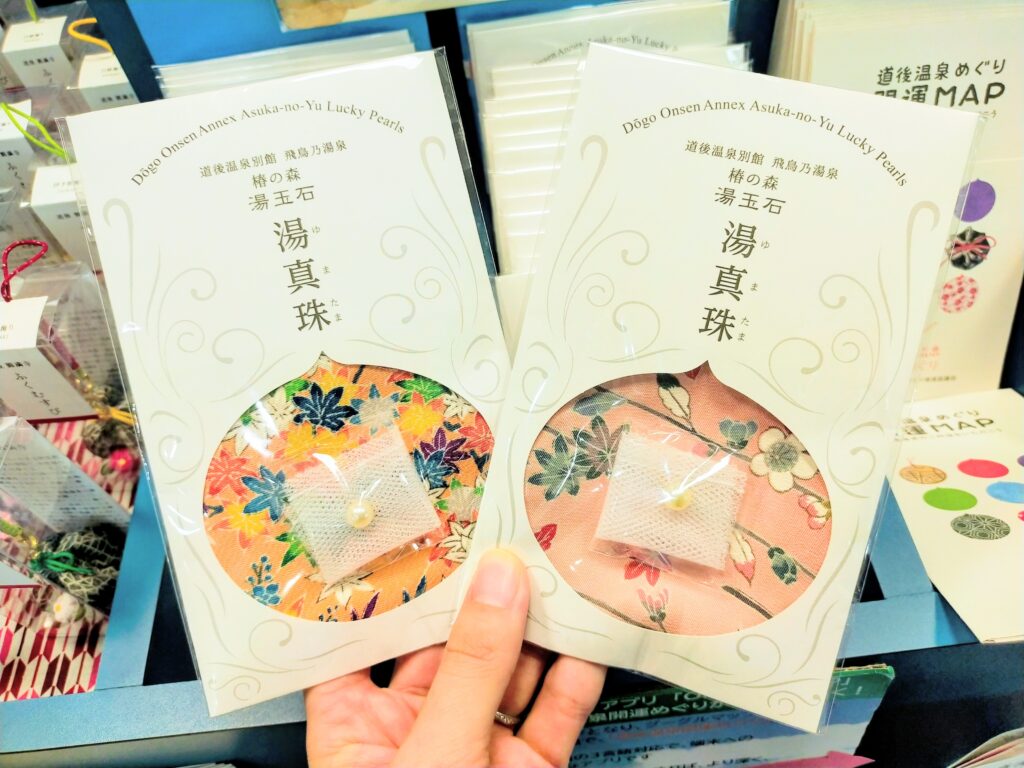 道後温泉別館の「飛鳥乃湯泉」の中庭で、自分の願いを込めて「湯真珠」に温泉のお湯をかけて祈願するんだそうです。