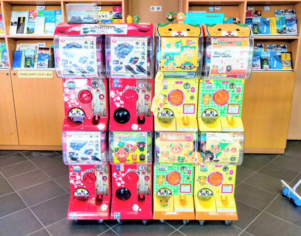 「みきゃん」のガチャと、「道後温泉本館のミニチュア」ガチャも。道後温泉本館のガチャは珍しいです。