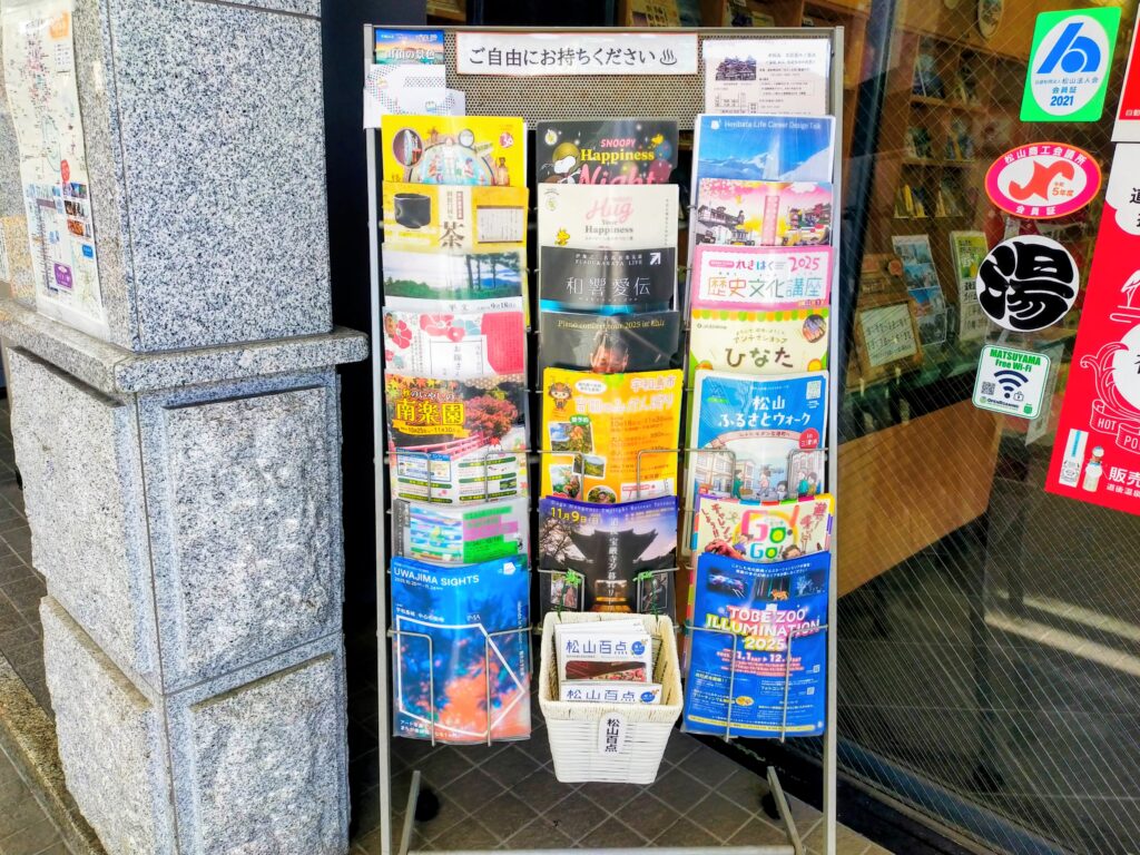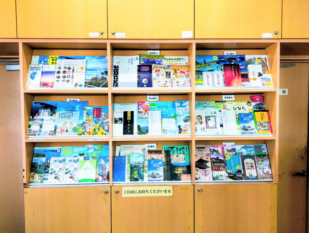 店内には道後温泉・愛媛県内の観光パンフレットやイベントのパンフレットなどもありました。