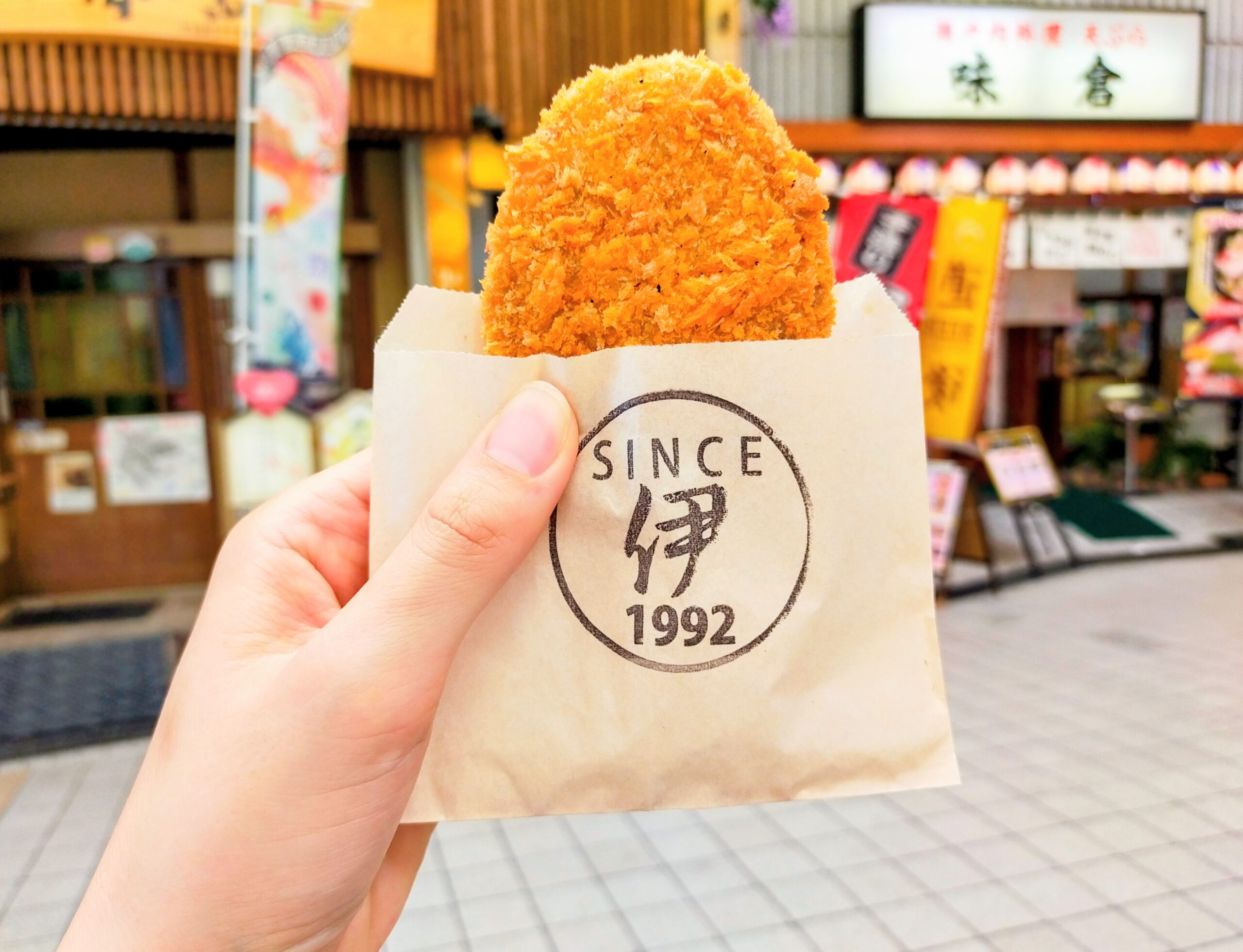 - 揚げたてをその場で提供してくれるので、アツアツを頬張れる!