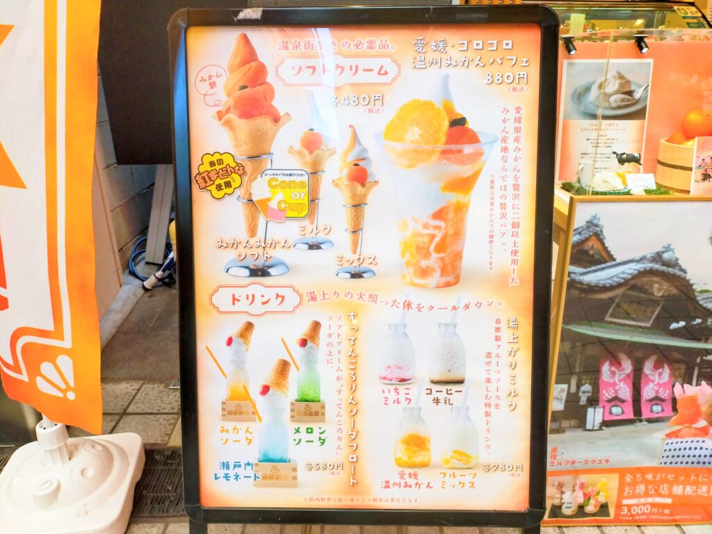 ▶みかんみかんソフト:愛媛みかんの果汁をたっぷり使った爽やかソフトクリーム。