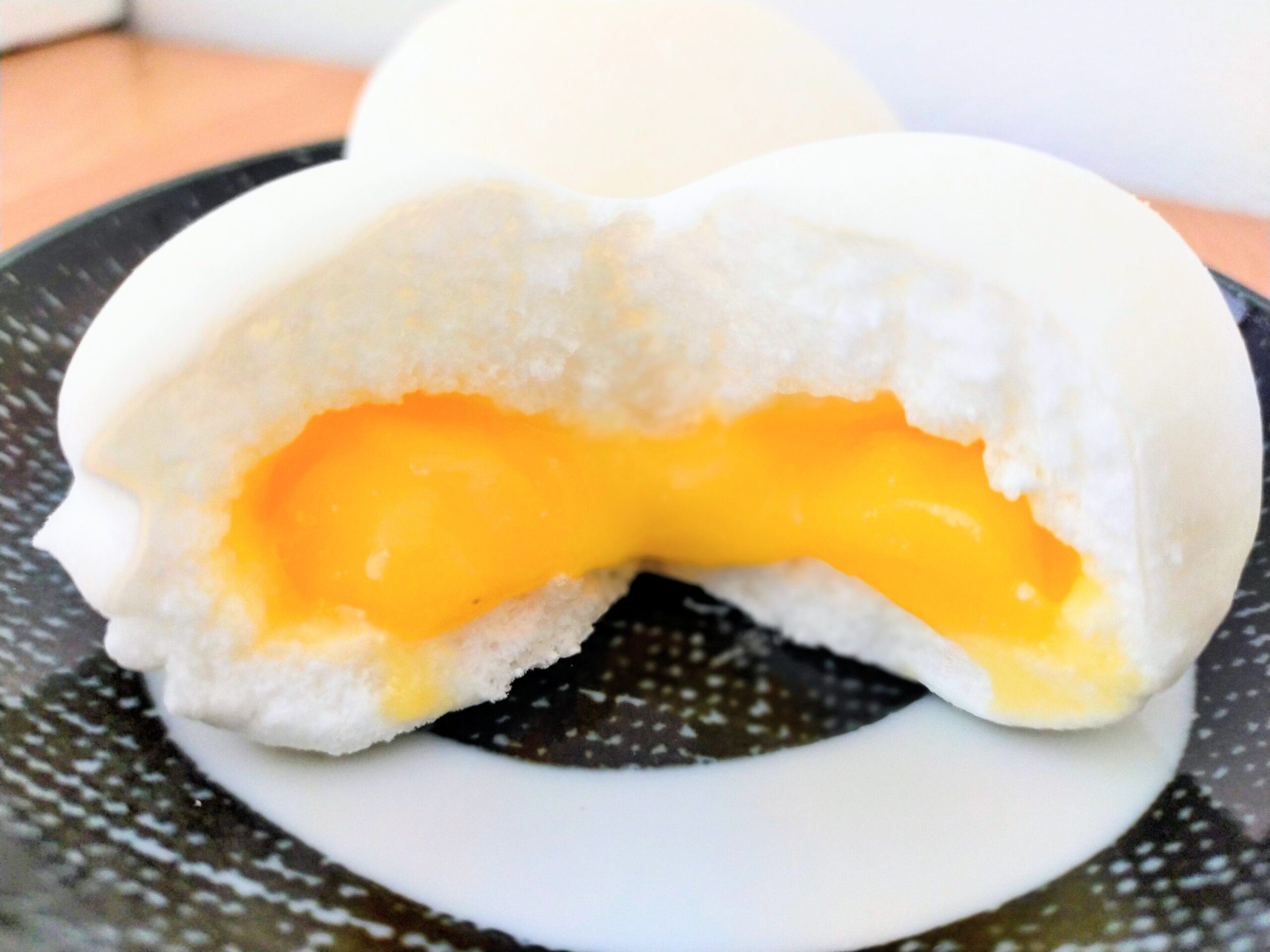 「つるの子」は、ふんわりとしたメレンゲの中に、濃厚な黄身餡がとろりと包まれた和菓子。見た目はまるでマシュマロのようですが、ひと口食べればその繊細な口どけと、やさしい甘さに驚かされます。