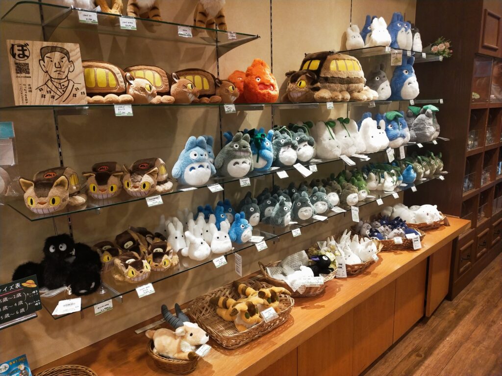 店内には「魔女の宅急便」や「となりのトトロ」など、ジブリ作品のぬいぐるみやグッズがたくさん販売されています